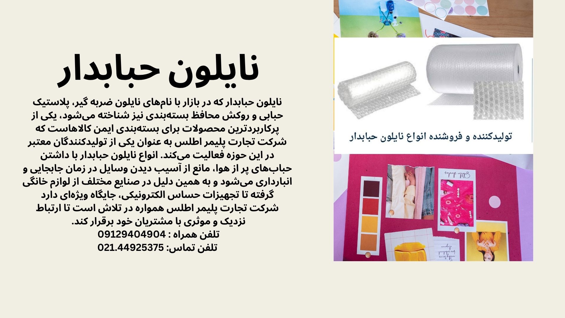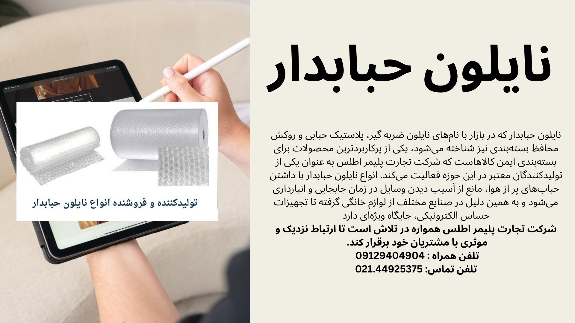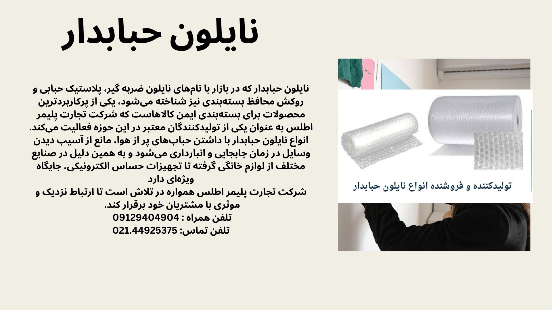 هنگام تصمیم‌گیری برای خرید، به خاطر داشته باشید که فروش نایلون حبابدار توسط بسیاری از مجموعه‌ها انجام می‌شود، اما دریافت مشاوره فنی و اطمینان از کیفیت مواد اولیه مهم است. شرکت تجارت پلیمر اطلس با سال‌ها تجربه در تولید محصولات پلیمری، می‌تواند یکی از گزینه‌های قابل اعتماد در این زمینه باشد. این شرکت می‌تواند در انتخاب بین نایلون حبابدار استاندارد، سنگین یا آنتی‌استاتیک به شما مشاوره دهد. در نهایت، استفاده هوشمندانه از نایلون ضربه گیر نه تنها از دارایی‌های شما محافظت می‌کند، بلکه با ارائه ظاهری مرتب و حرفه‌ای به بسته‌بندی، بر ارزش برند شما نیز می‌افزاید. همکاری با تأمین‌کنندگانی مانند شرکت تجارت پلیمر اطلس می‌تواند ضمانت کیفیت و قیمت رقابتی را برای شما به ارمغان آورد.